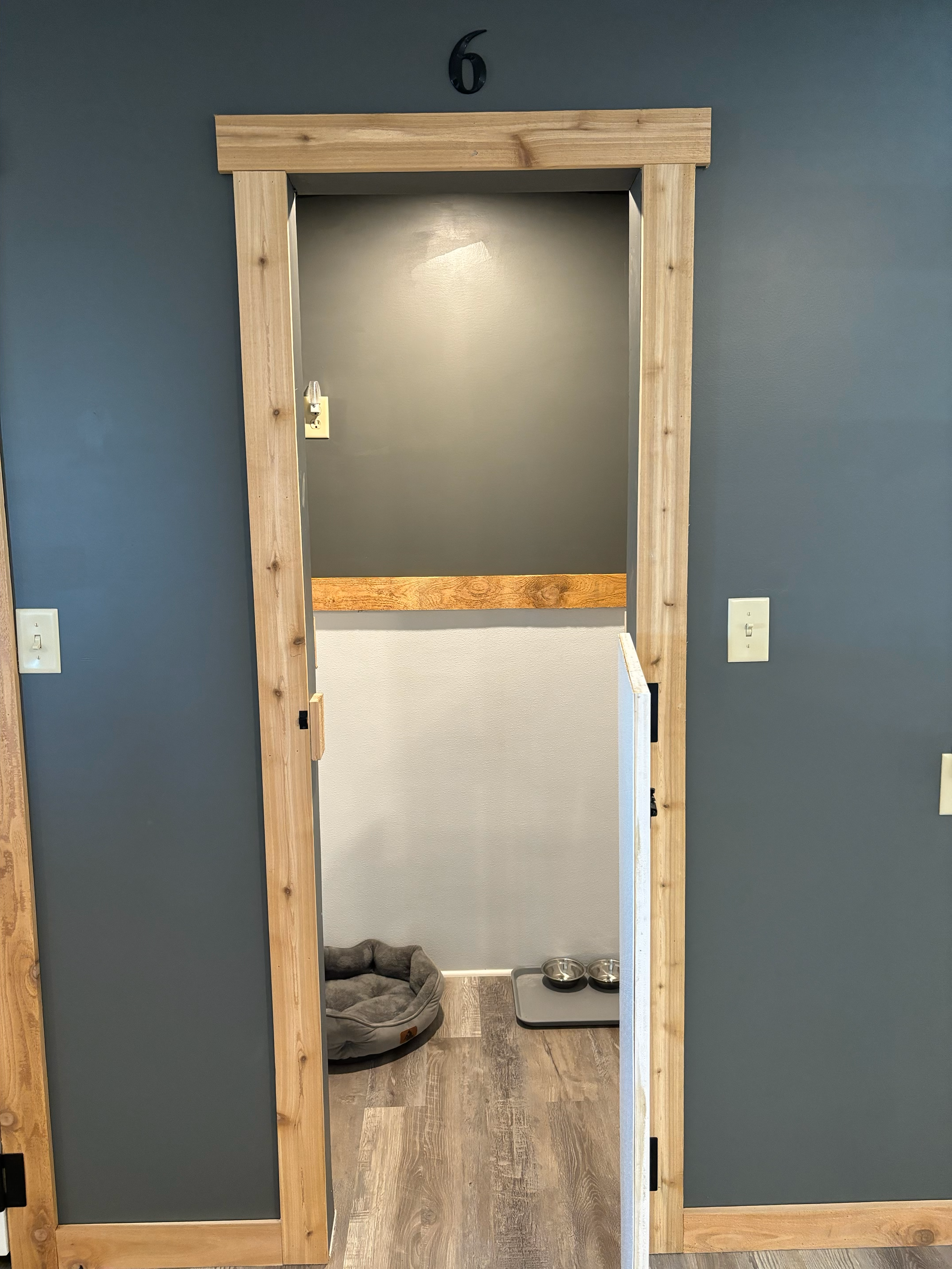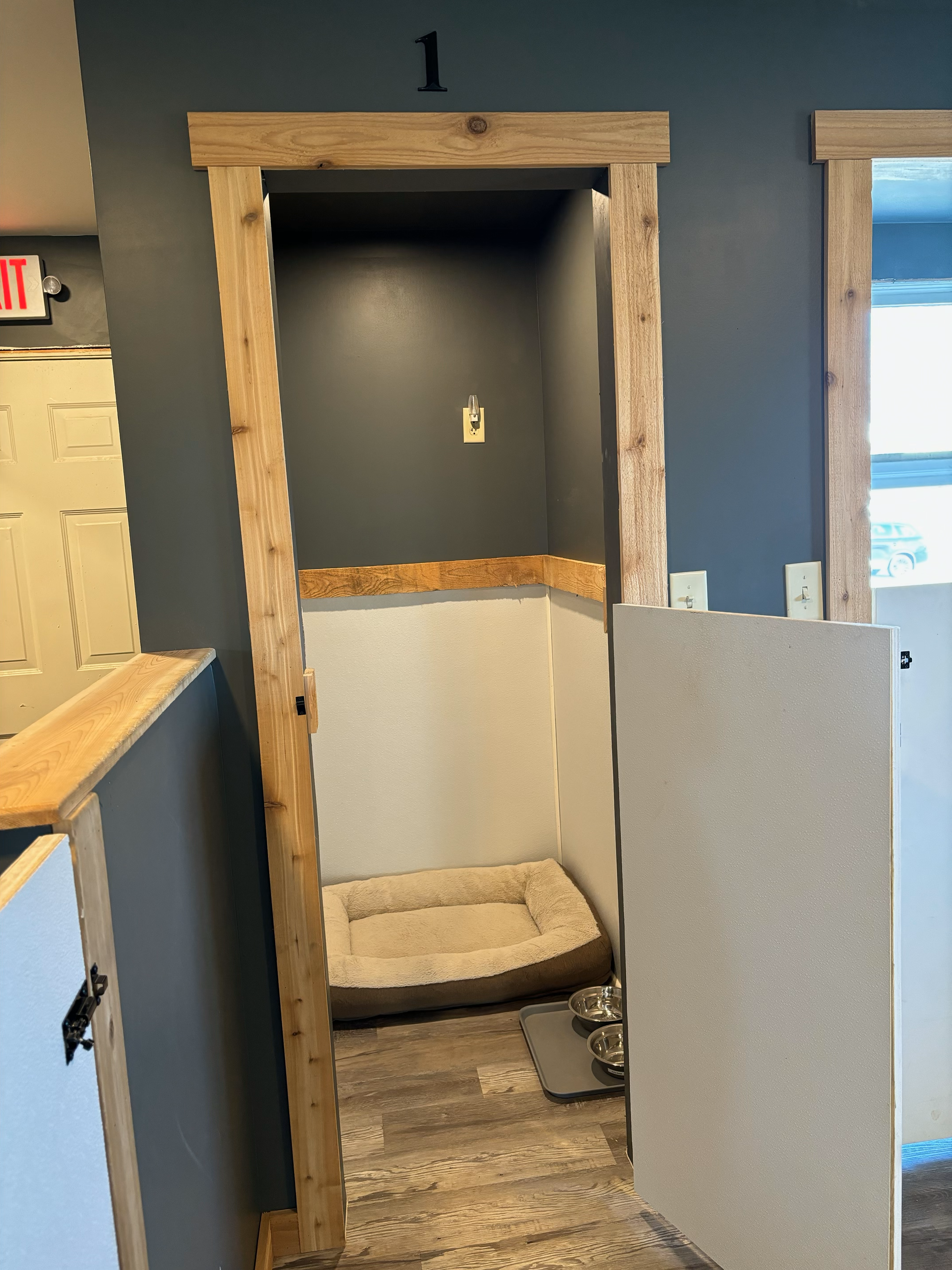 The Alexander Suite is our largest room and is perfect for extra big dogs or multi-dog households. This room also features a doggy door entering into the business owner’s office for extra love and attention.